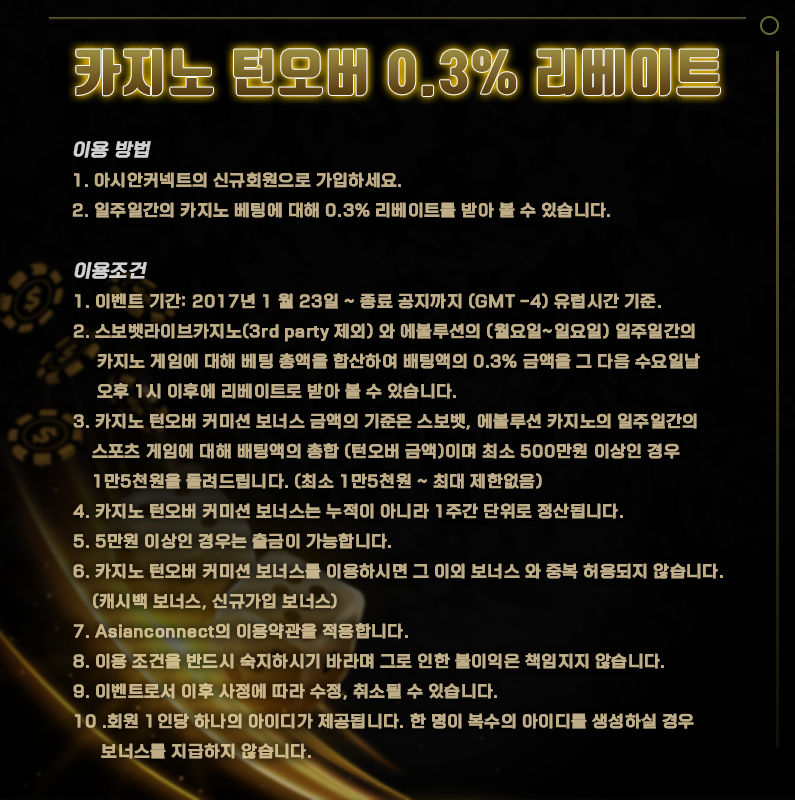 카지노 턴오버 0.3% 리베이트